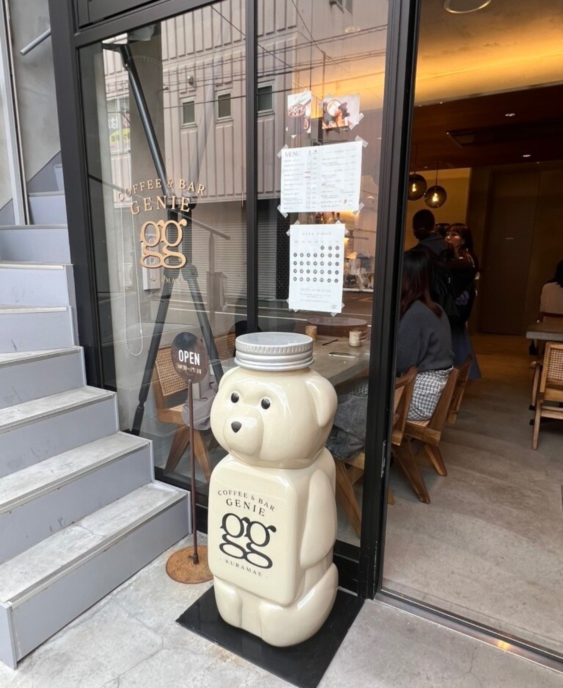 東京都蔵前にあるクマのボトルがかわいいカフェCOFFEE & BAR GENIE KURAMAE🐻 コーヒーも美味しく、コーヒー以外のドリンクも豊富です。