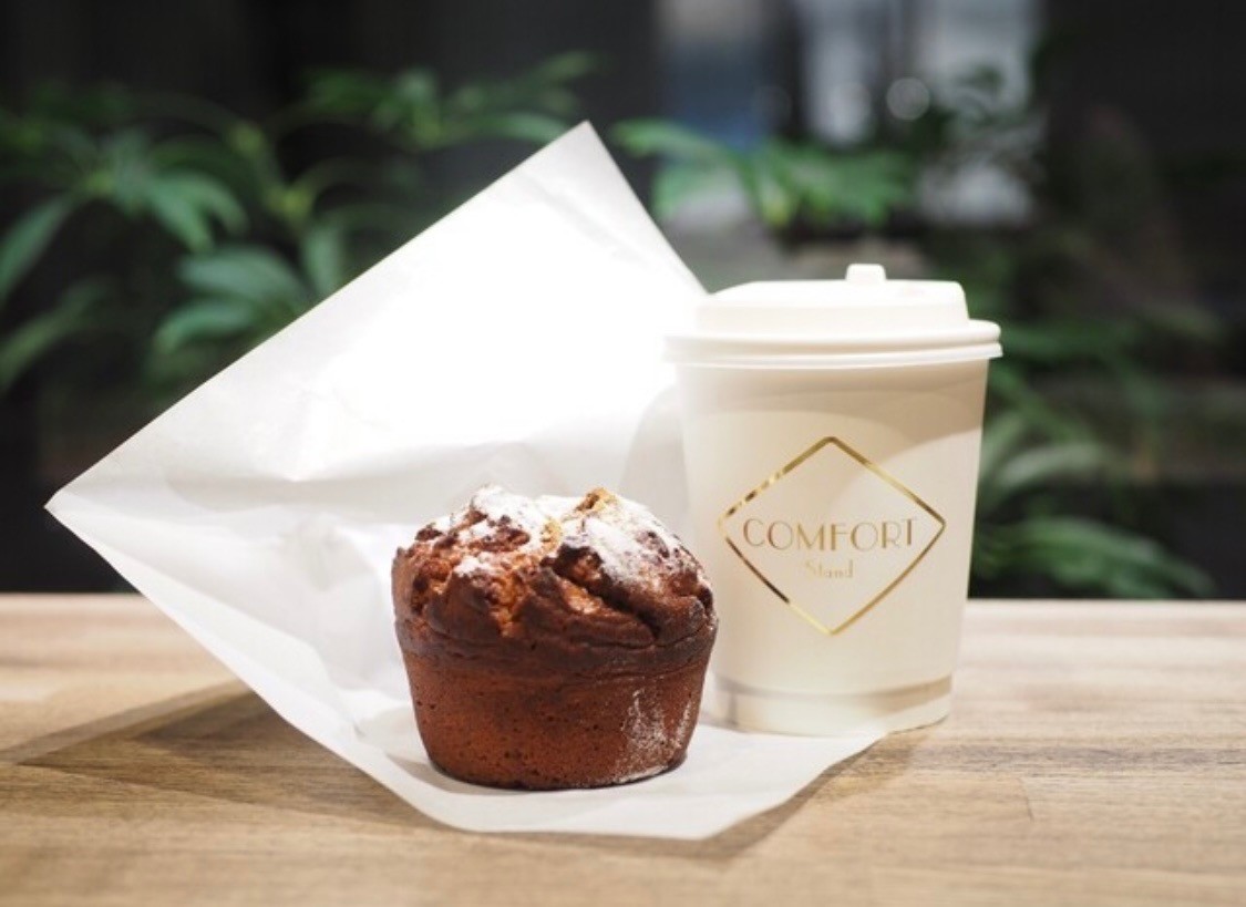 汐留にあるカフェ、コンフォートスタンド☕️ とてもおしゃれで店員さんも接客がよかったです。マフィンをいただきましたが美味しかったです。いろんな焼き菓子がありました。コーヒーも美味しいです。