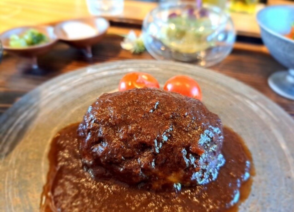 国立競技場にあるフレンチ、natuRe tokyo🇫🇷 薪焼ハンバーグが美味しかったです。テラス席がとても気持ちいいです。